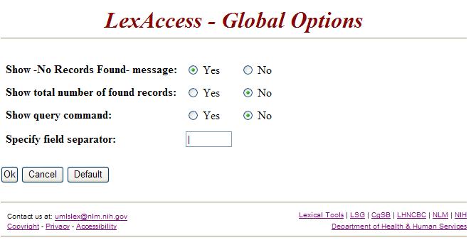 This page illustrates all other global options provided by LexAccess web tools. It includes: